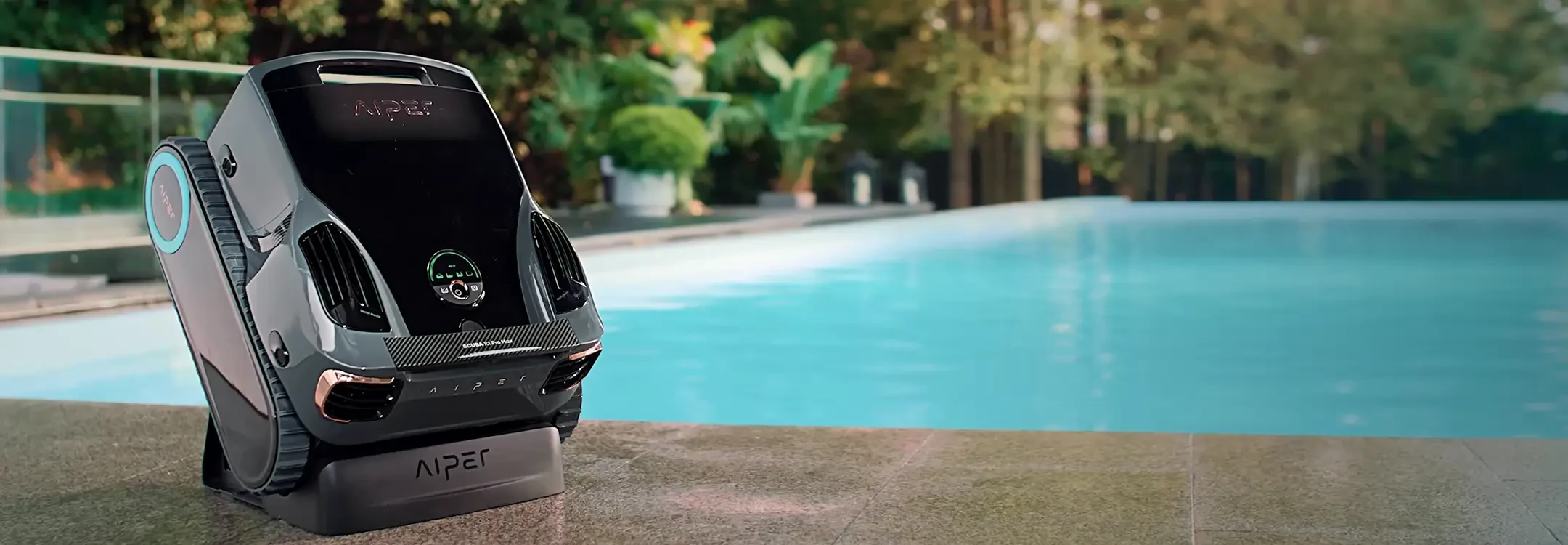 El robot para piscinas Aiper X1 Pro Max cuenta con un chasis ligero de policarbonato resistente a los rayos UV y a la corrosión, con certificación IPX8, lo que garantiza su durabilidad y robustez. Su mango ergonómico y su forma perfilada facilitan enormemente su manejo. Además, la base inalámbrica integrada sirve tanto de estación de carga como de carro de transporte, lo que simplifica aún más su uso y almacenamiento diario. Este cuidado diseño no solo garantiza una gran durabilidad, sino que también se integra discretamente en el entorno de su piscina.
