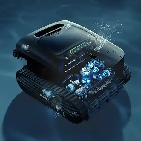 AquaSense 2 Ultra combina cinque funzioni di pulizia, un avanzato sistema di spazzole laterali e un telecomando con l'app Beatbot per garantire una piscina perfettamente mantenuta, mirando con precisione alle zone da pulire: superficie, fondo, linea di galleggiamento, pareti, e chiarificando l'acqua per renderla limpida.